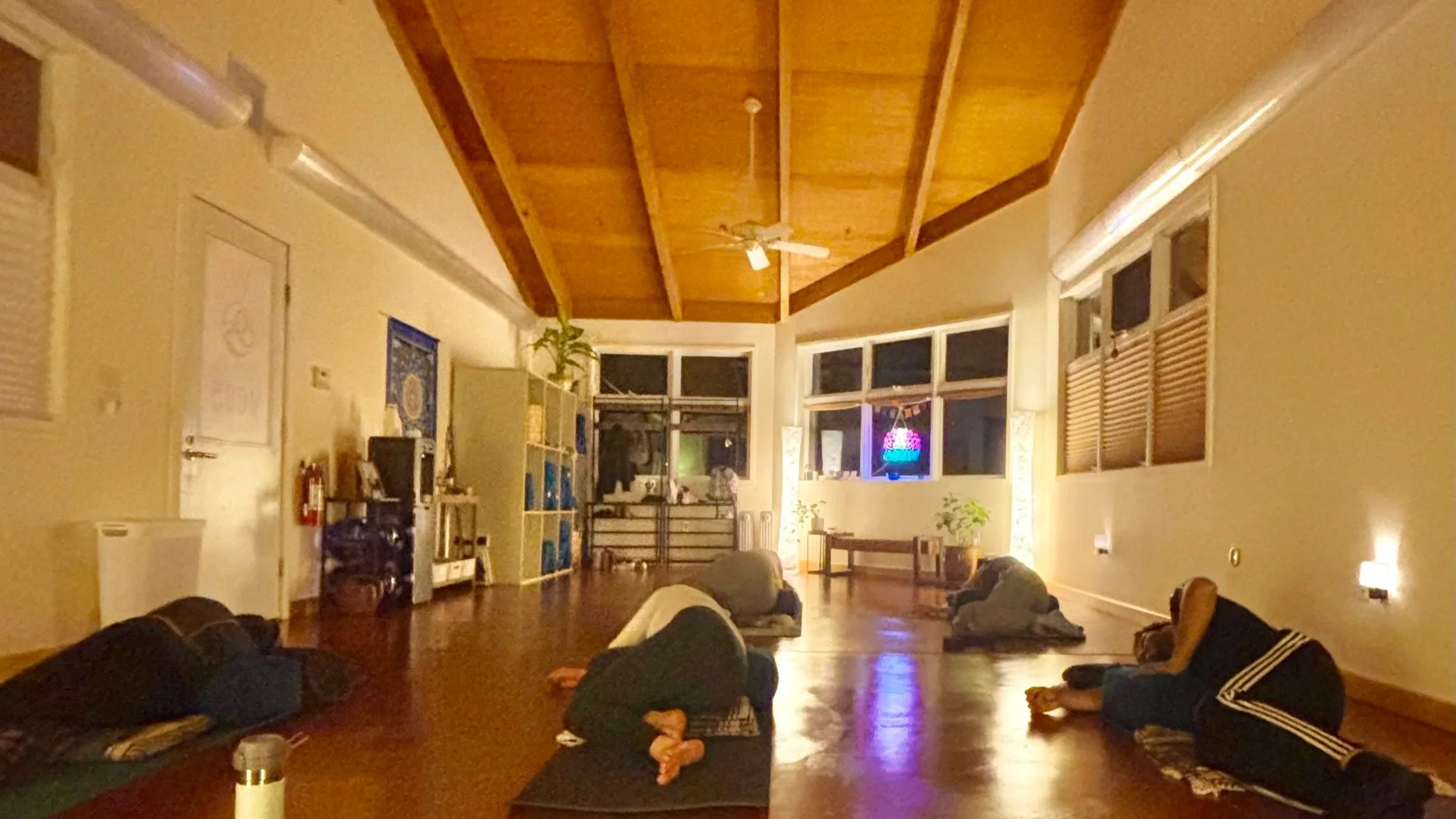 A 45-minute grounding Yin class offered in a warm room (around 80°) and lit by candlelight. This practice consists of long, passive floor poses to help release tension and calm the nervous system. Expect a cozy, soothing atmosphere and deep stretching. After class, enjoy a cup of tea from our tea area — or head downstairs to Khom Loi for a delicious post-class dinner. Some yoga experience preferred but not required.